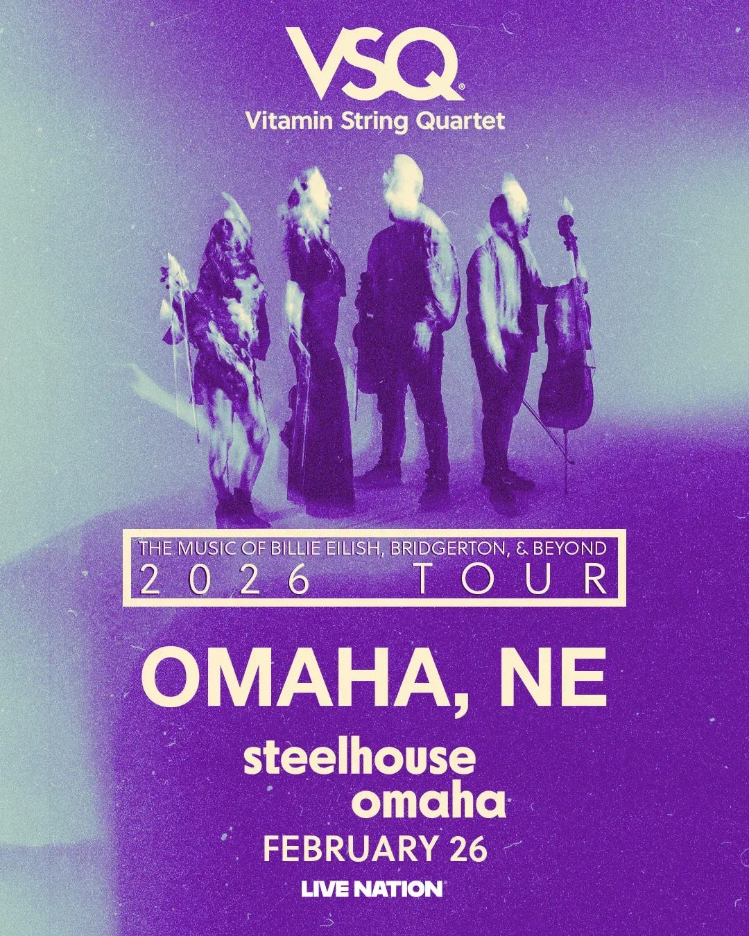Vitamin String Quartet has been putting out albums of popular music and tributes to artists for decades now. They have put out over 50 tribute albums, and you hear their music everywhere and probably are not aware. Every-time I am waiting for a flight at Eppley VSQ is playing. VSQ is getting even more popular as the project just put out their Taylor Swift album and, at Homer’s we sold out of it that morning and couldn’t get anymore as they sold out everywhere. In 2024 they came through town doing Taylor Swift and Bridgerton. This time they will do Bridgerton and Billie Eilish at Steelhouse Omaha on Thursday.