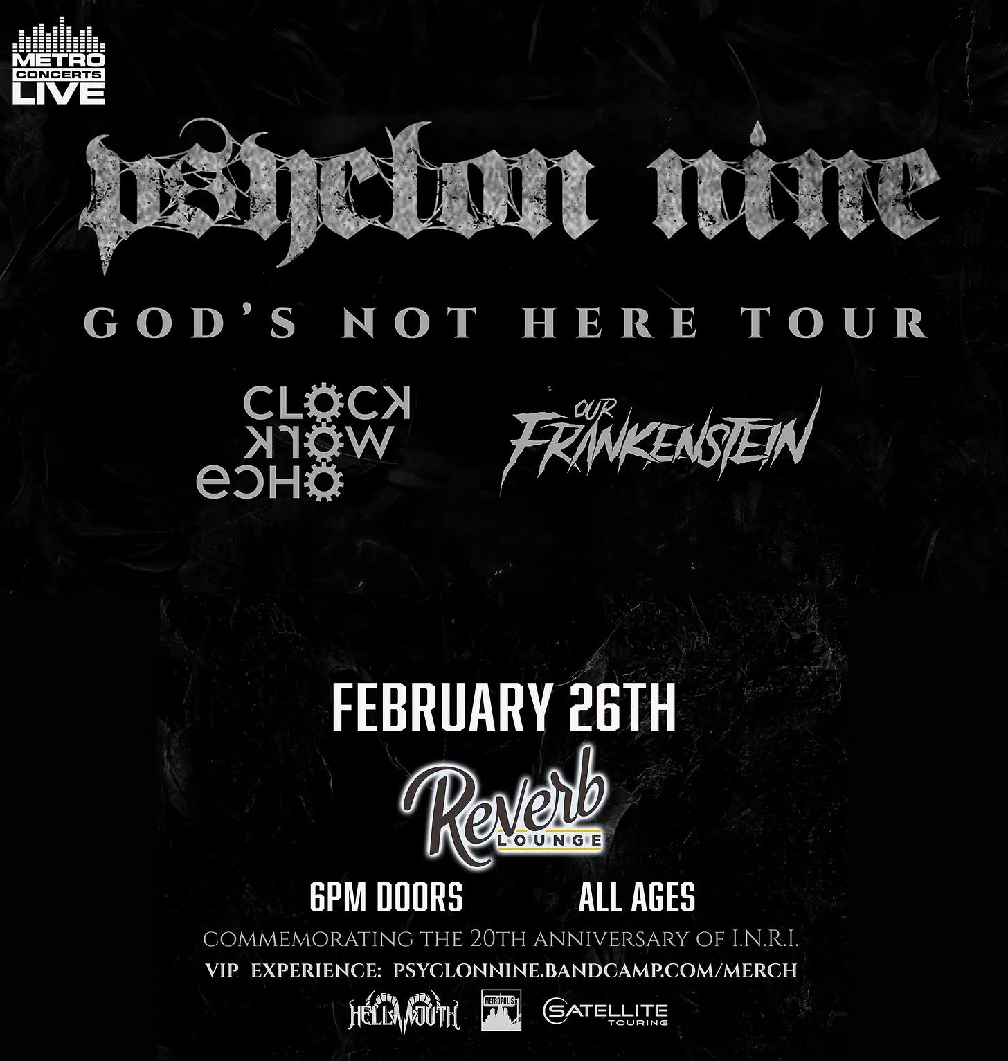 Industrial metal band Psyclon Nine celebrated twenty five years as an entity last year. This year they will take their album I.N.R.I out for a 20th Anniversary celebration. They also released a new album last year called And Then Oblvion. You can check out the God’s Not Here tour at Reverb Lounge on Thursday.