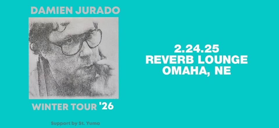 Long-running indie singer-songwriter and Omaha fave Damien Jurado will return to Omaha for a show at Reverb Lounge on Tuesday. His tunes kind of lean into that thick-of-winter vibe. He will be playing his greatest hits, it says, which is, of course, tongue-in-cheek. He will be supported by St. Yuma from Seattle.